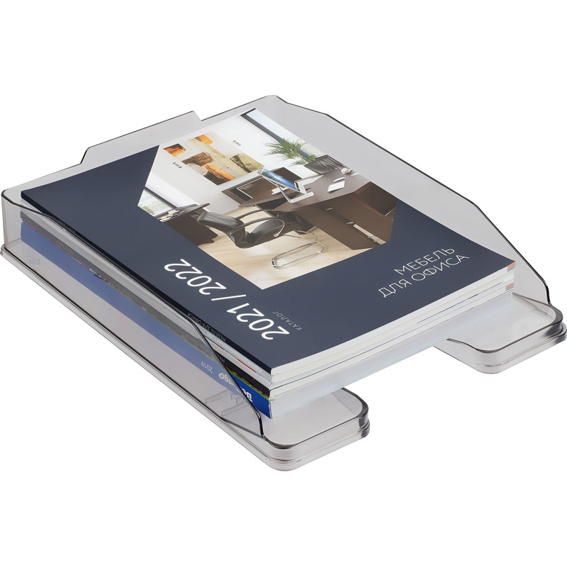Лоток горизонтальный для бумаг Стамм Эксперт А4, серый тонированный, ЛТ203