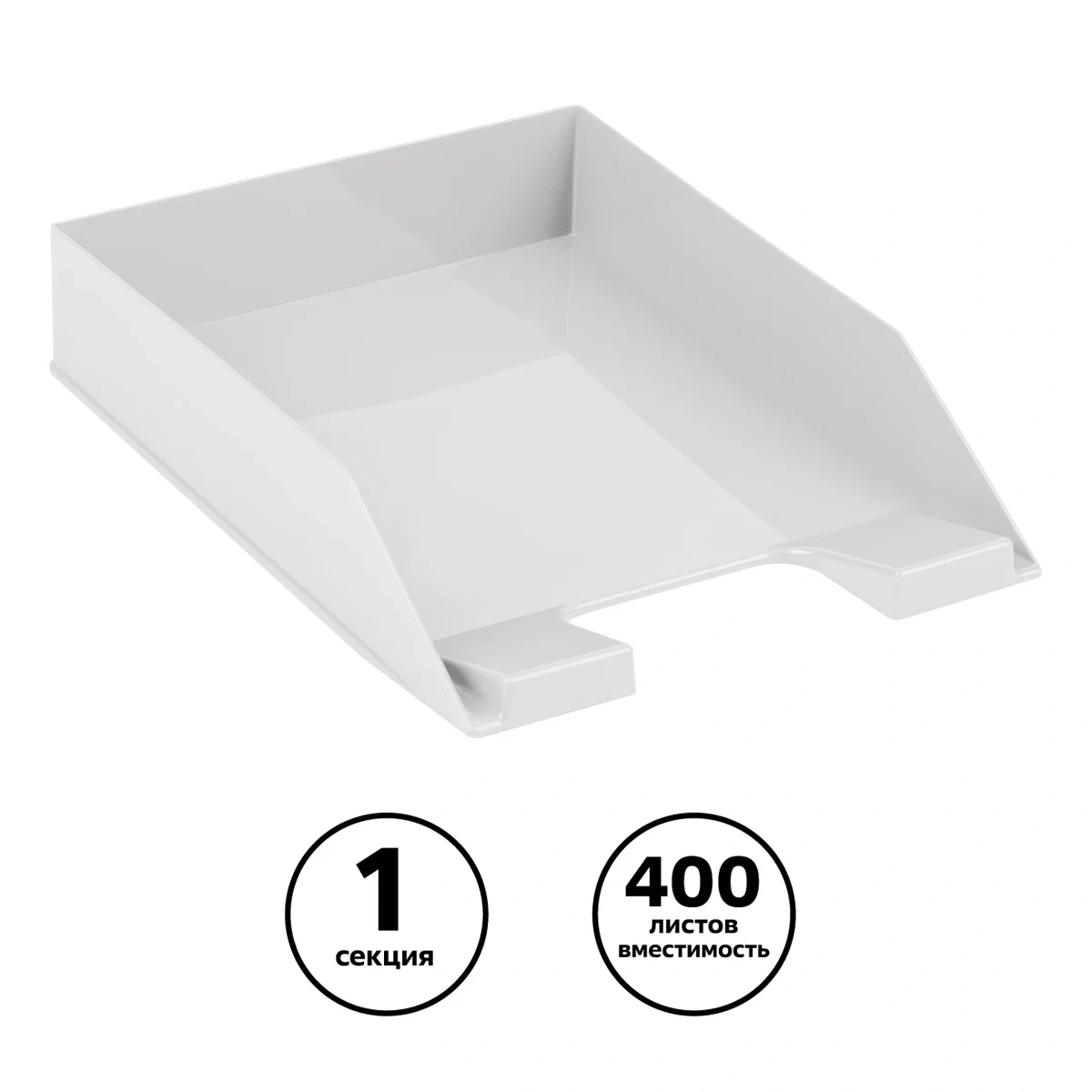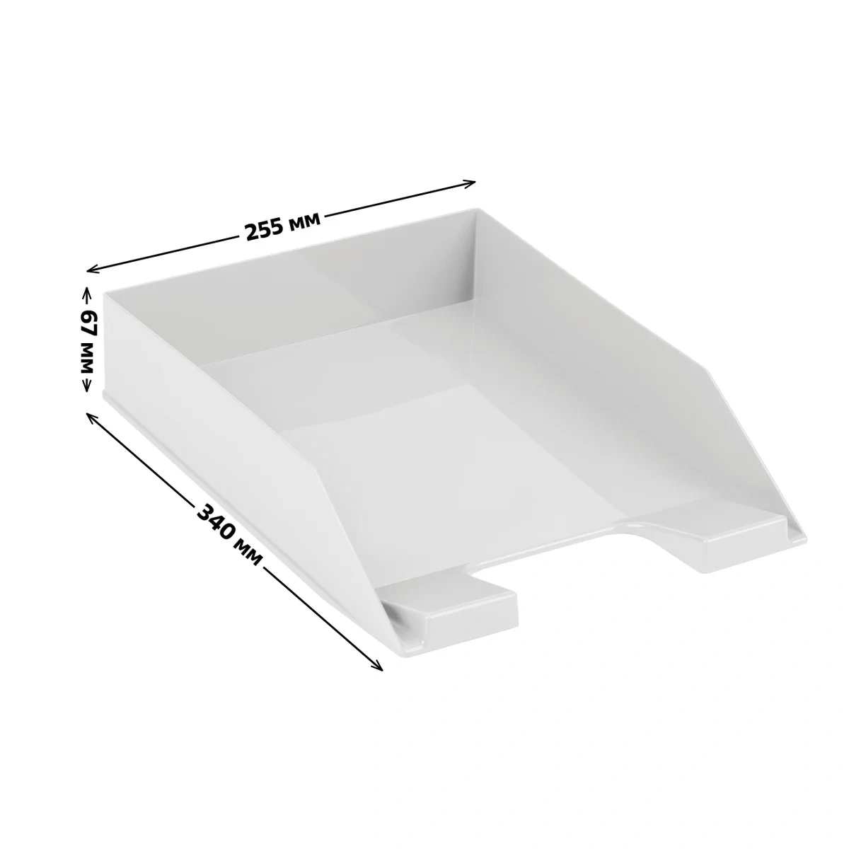 Лоток для бумаг горизонтальный «СТАММ» серии «Фаворит» подходит для хранения бумажной продукции формата А4. Лаконичный дизайн, глянцевая поверхность. Изделие высотой 67 мм вмещает до 400 листов. Изготовлен из качественного полистирола. Цвет лотка – белый. Лоток имеет лёгкий, вместительный, прочный корпус. Предусмотрена возможность установки одного лотка на другой.