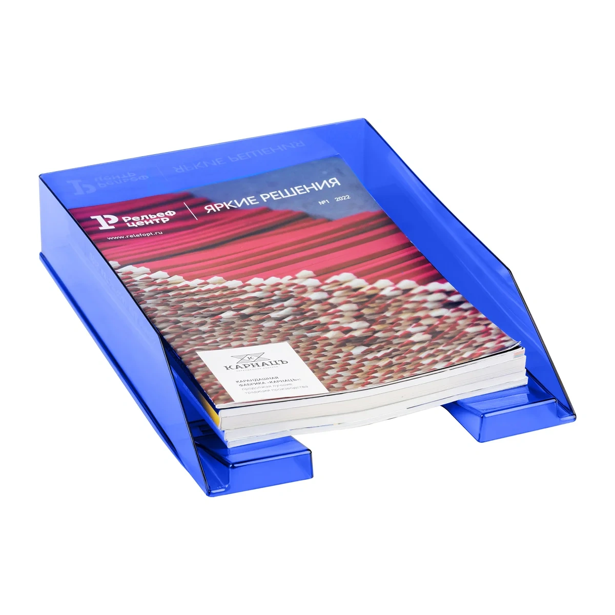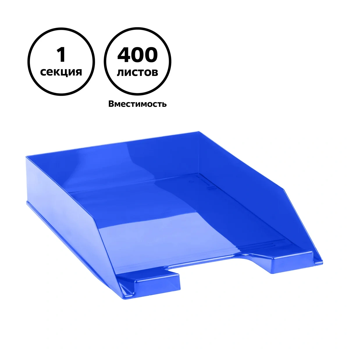 Лоток горизонтальный для бумаг Стамм Фаворит тонированный синий