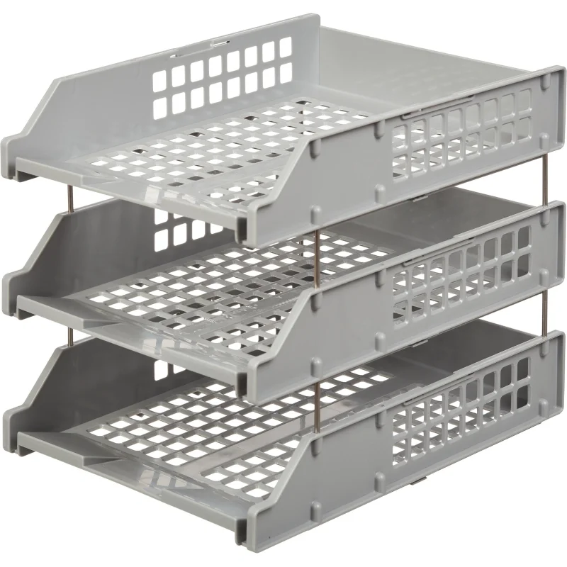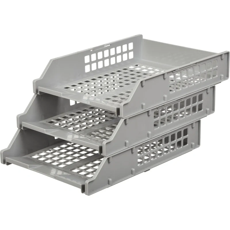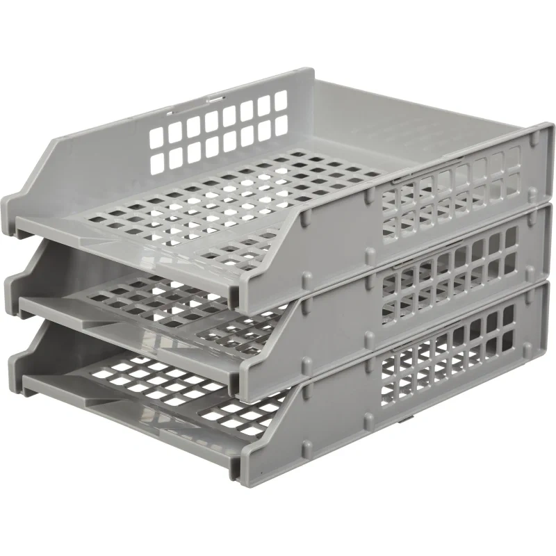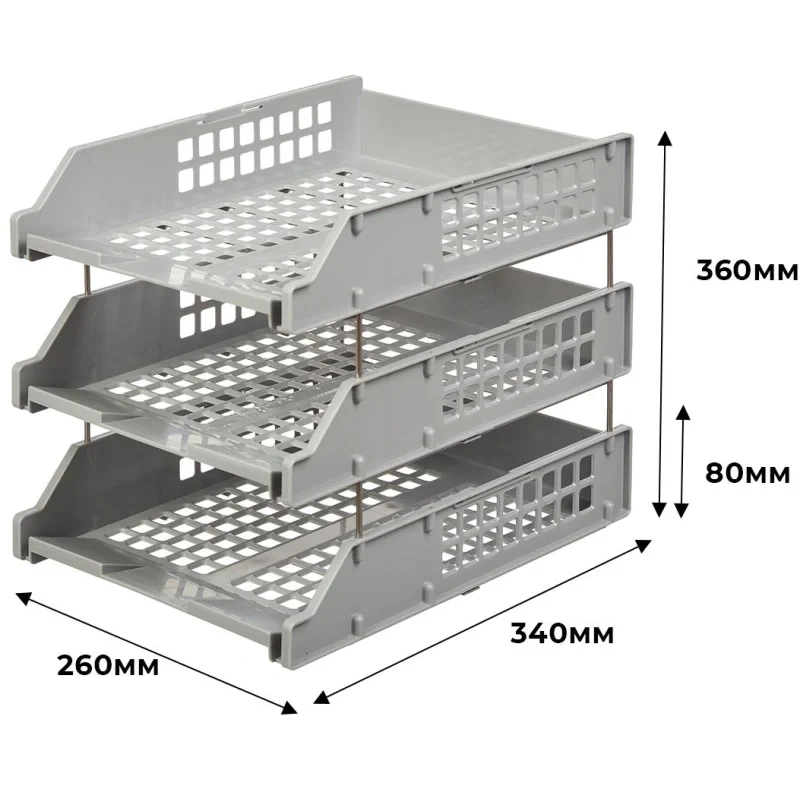 Лоток горизонтальный для бумаг Стамм Strong А4, серый, 3шт/уп, ЛТ111