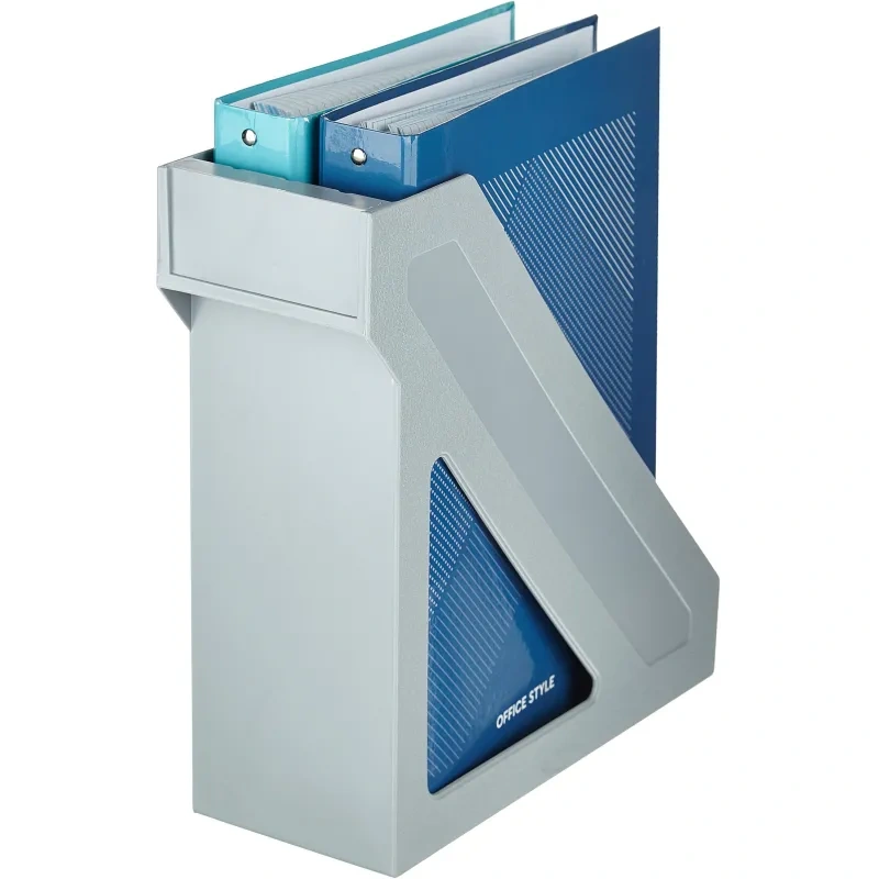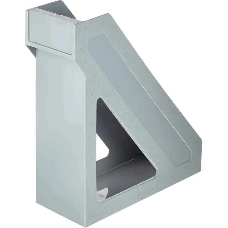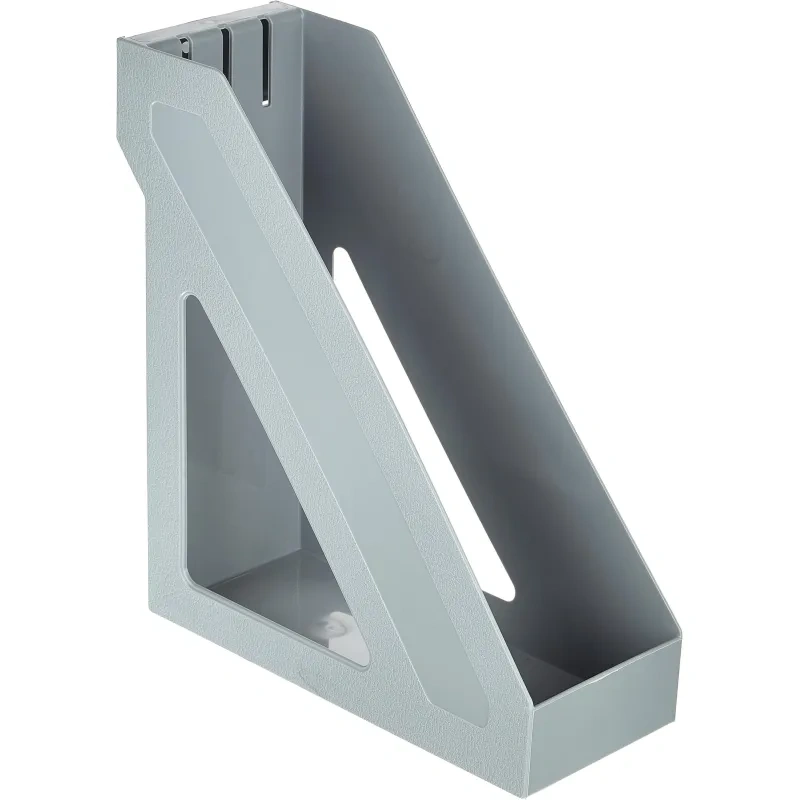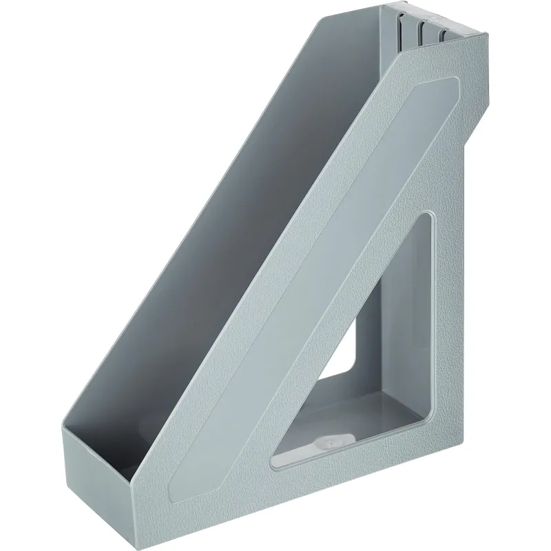Лоток вертикальный для бумаг формата А4, одно отделение. Устойчивый, вместительный, прочный корпус. Изготовлен из качественного полистирола. На торце лотка есть захват для удобного вытягивания с полки. Захват также служит окном для маркировки, предусматривающим возможность смены вкладышей. Цвет лотка — серый. Размеры (ВхШхГ): 285×100×265 мм. Вмещает до 800 листов.