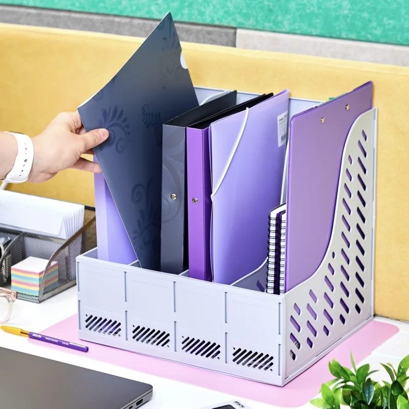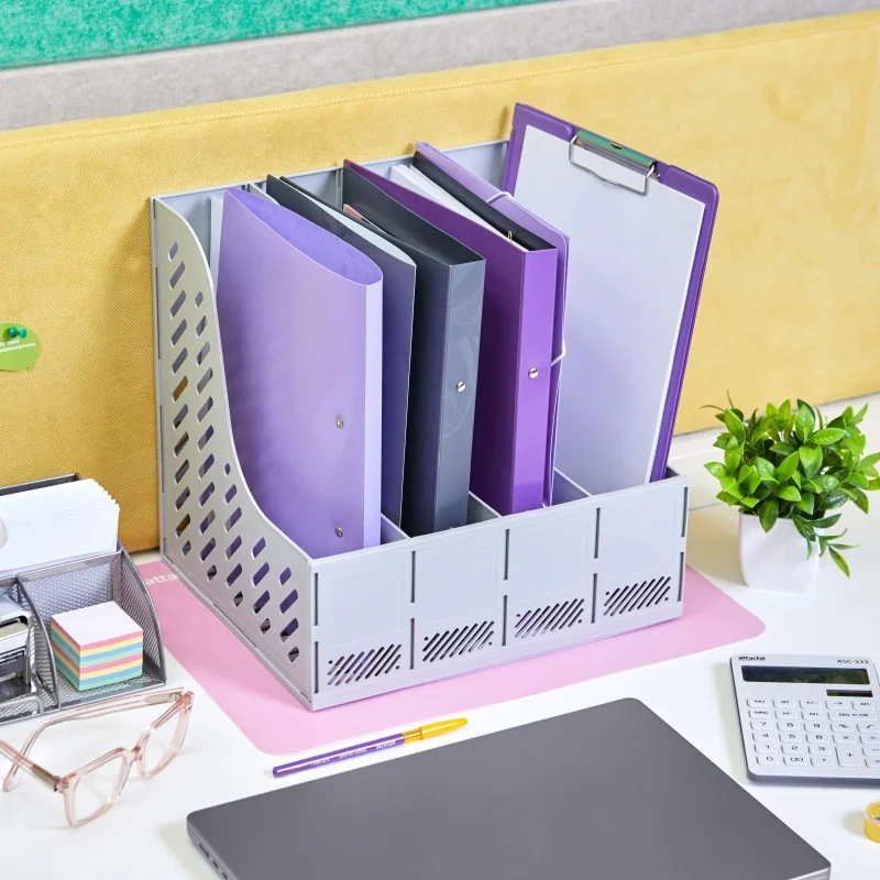 Вертикальный накопитель Attache выполнен из прочного пластика серого цвета. Минималистичный дизайн лотка создаст на Вашем рабочем месте ощущение легкости. Не занимает много места на рабочем столе. Позволяет удобно хранить и систематизировать документы и печатную продукцию формата А4. Имеет 4 отделения равной ширины. Размеры изделия (ДxШxВ): 270×370×310 мм. Вес: 560 г. Конструкция требует самостоятельной сборки. Удобен для хранения большого объема документов. В комплекте есть этикетка для маркировки. Количество в транспортном коробе — 10 штук.