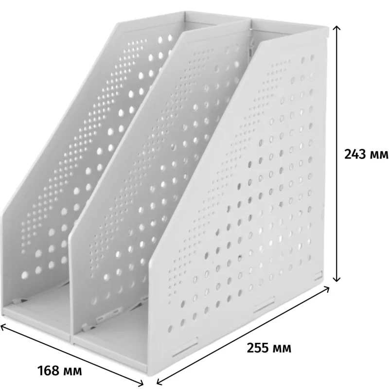 Складной вертикальный накопитель Deli серого цвета для хранения каталогов, бумаг, документов и папок формата А4. Выполнен из прочного и высококачественного пластика. Стильный дизайн накопителя придаст Вашему рабочему месту изысканность и элегантность. Содержит 2 отделения, которые позволяют структурировать документы и быстро найти нужный файл. Вертикальный накопитель для бумаг удобно хранить на столе, он не займет много места. Размеры изделия: 168×243×255 мм. Обладает устойчивой конструкцией. Органайзер для бумаг продается уже в собранном виде.