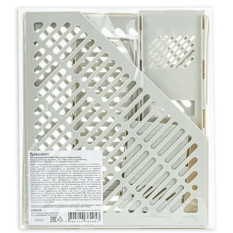 Лоток вертикальный для бумаг BRAUBERG 'Office-Expert', 90 мм, сетчатый, сборный, серый, 238020