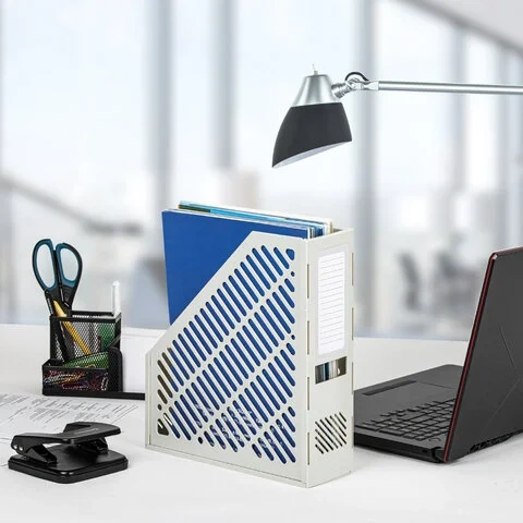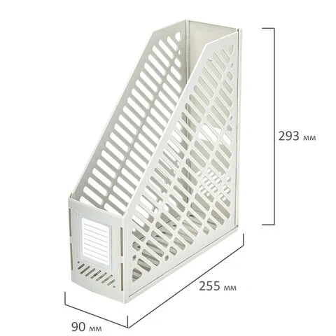 Выполнен в сером цвете, с одним отделением и с табличкой для маркировки. Предназначен для хранения бумаг формата А4. Представляет собой устойчивую разборную конструкцию с сетчатыми поверхностями. Размеры: высота - 293 мм, ширина - 90 мм, глубина - 255 мм.