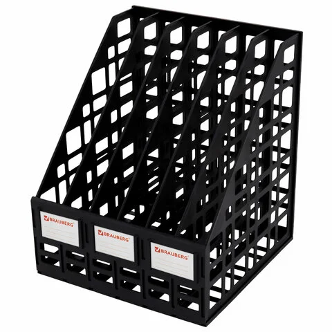 Лоток вертикальный для бумаг BRAUBERG 'ULTRA', 240 мм, 6 отделений, сетчатый, сборный, черный, 23825