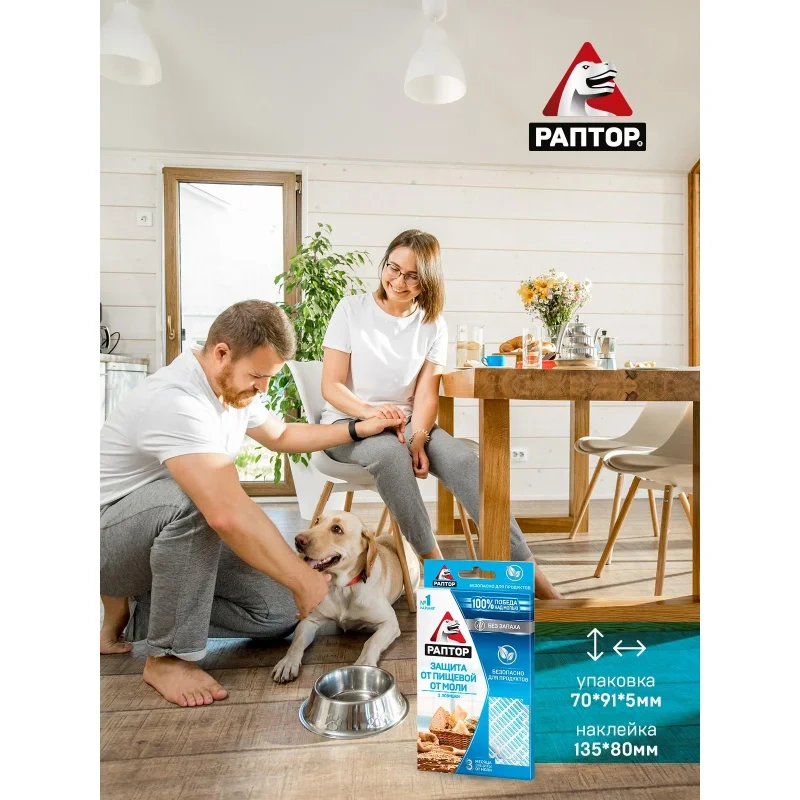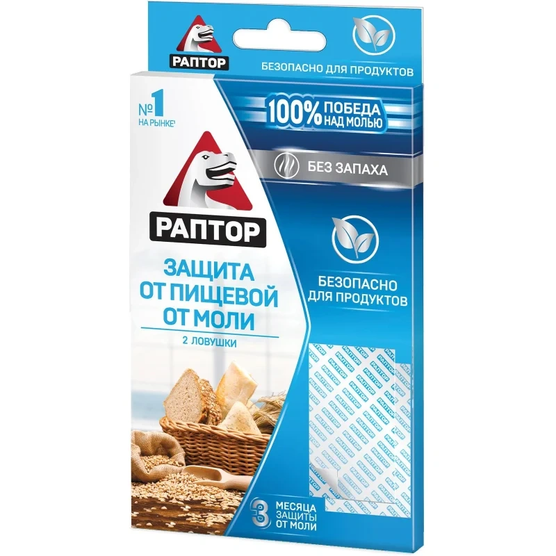 Ловушка от пищевой моли Раптор 3 месяца эффективной защиты, без запаха, 2шт