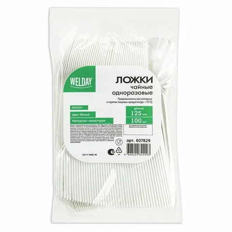 Приборы изготовлены из высококачественного пищевого полистирола белого цвета, поэтому они легкие и безопасные в использовании. Подойдут как для холодных, так и для горячих (до +70° Цельсия) блюд. Длина - 125 мм. В комплекте 100 штук.