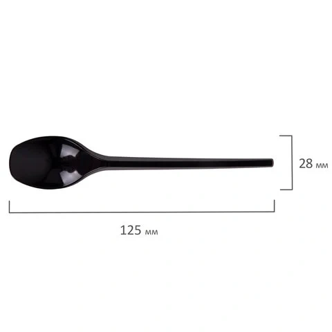 Приборы изготовлены из высококачественного пищевого полистирола черного цвета, поэтому они легкие и безопасные в использовании. Подойдут как для холодных, так и для горячих (до +70 °C) блюд. Длина – 125 мм. В комплекте 100 штук.