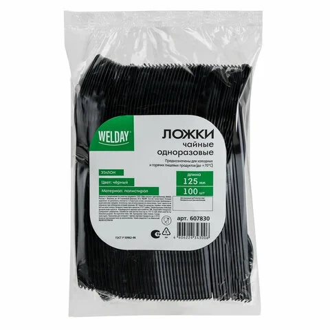 Ложка одноразовая чайная Белый Аист Эталон черная, 12.5см, 100шт/уп