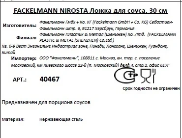 Ложка Fackelmann Nirosta для соуса, 30 см — удобный и практичный инструмент, с помощью которого вы без труда сможете положить немного соуса себе в тарелку. Прилагать особых усилий не требуется, достаточно аккуратно зачерпнуть смесь. Ложка для соуса имеет практичный размер и удобную длинную ручку. Она выполнена из качественного материала. Он не подвержен воздействию пищевых кислот, не придает продукту неприятный запах и не влияет на его вкусовые качества. Инструмент отличается высокой прочностью, не царапается. Инструмент рекомендуется после каждого использования промывать теплой водой с мягким моющим средством, затем хорошо просушить.
