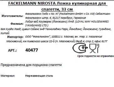| Комплектация | ложка для спагетти - 1 шт. |