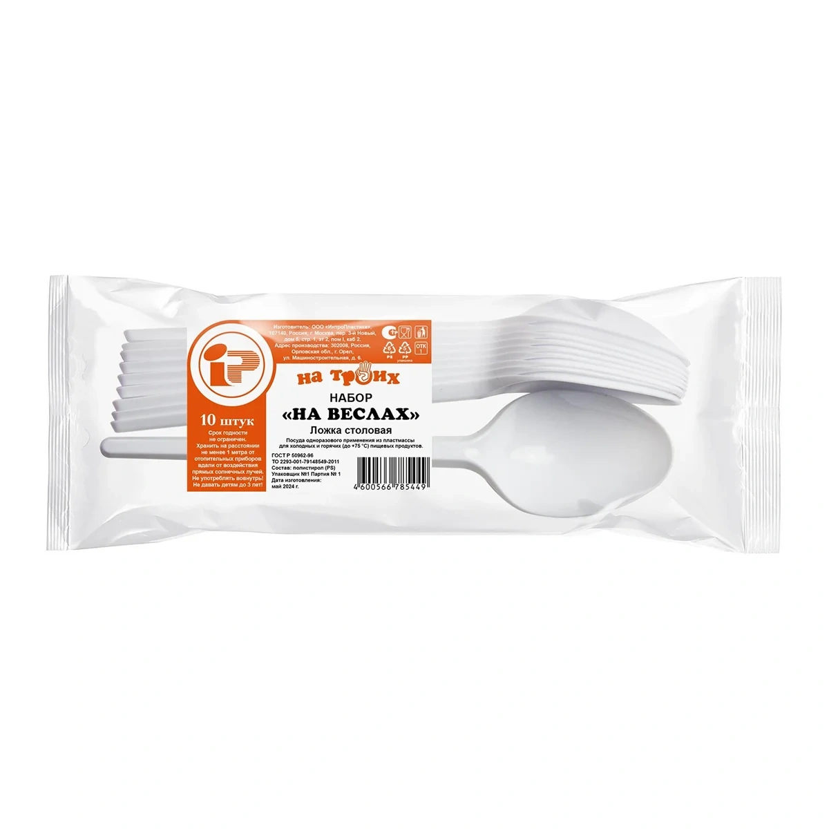 Ложка одноразовая На троих На веслах пластиковая белая, 10шт