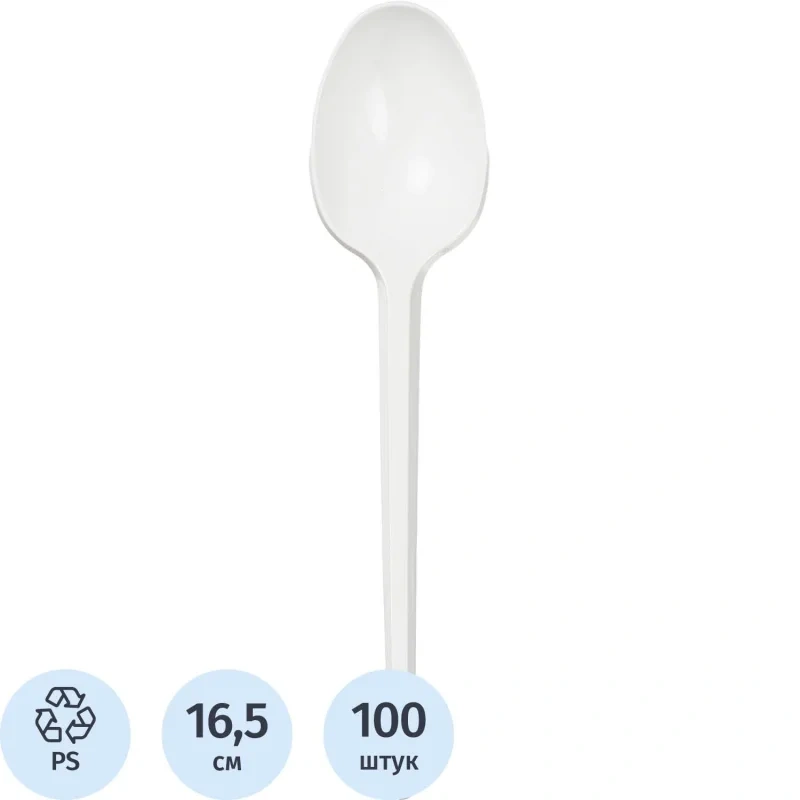 Ложка одноразовая столовая белая, 16.5см, 100шт/уп