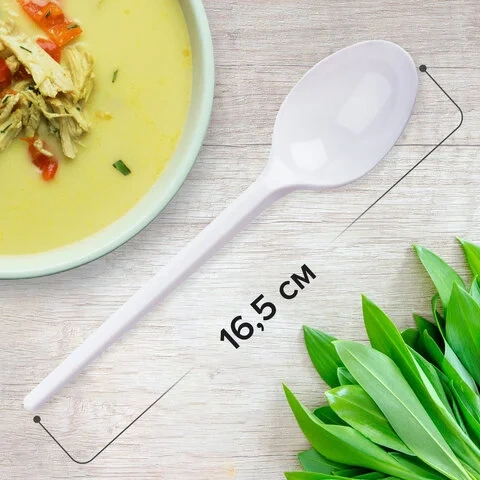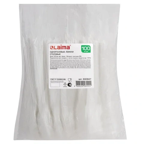 Ложка одноразовая столовая Laima Бюджет белая, 16.5см, 100шт/уп