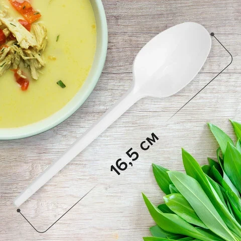 Ложка одноразовая столовая Laima Стандарт белая, 16.5см, 100шт/уп
