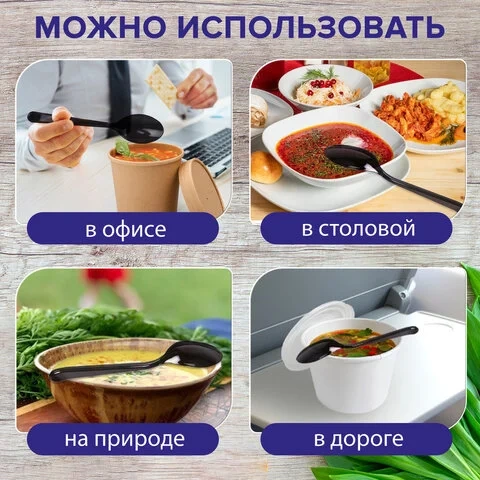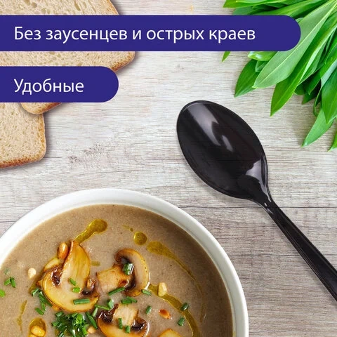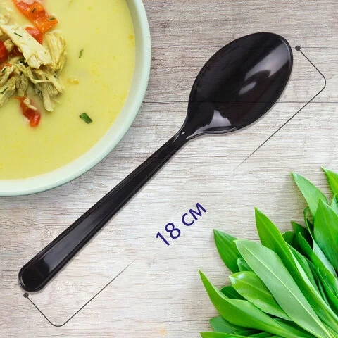 Ложка одноразовая столовая Белый Аист Эталон черная, 18см, 50шт/уп