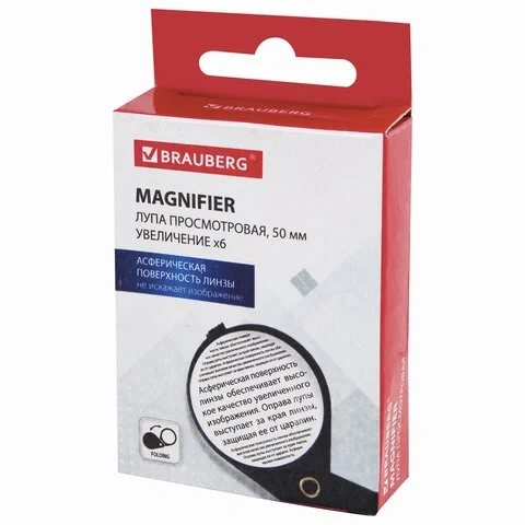 Лупа Brauberg увеличение х6, D=50мм, складная
