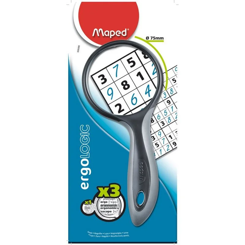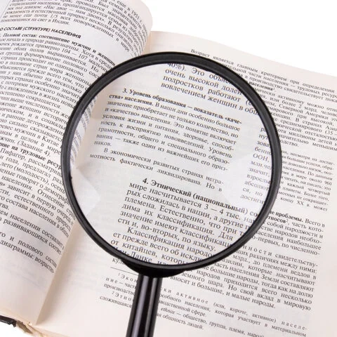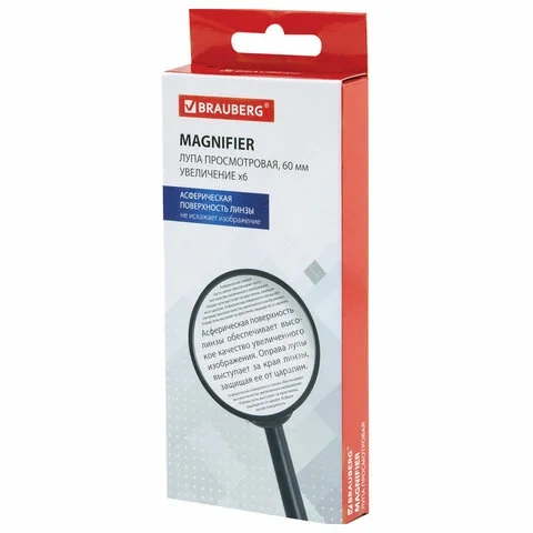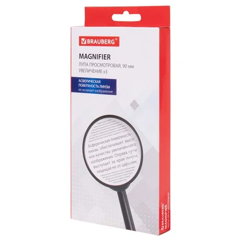 Лупа Brauberg увеличение х3, D=75мм, черная, с подсветкой