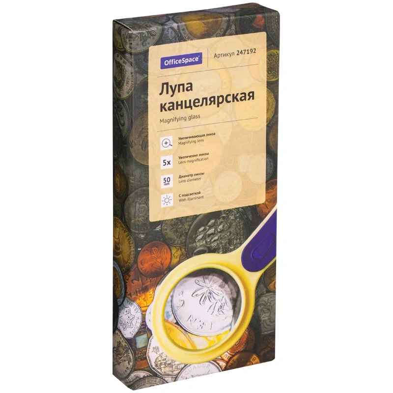 Лупа Officespace увеличение х5, D=50мм, подсветка