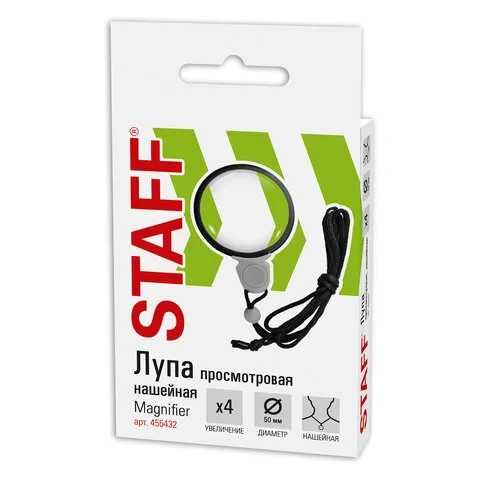 Лупа просмотровая нашейная STAFF, 4-х кратное увеличение, на шнурке, диаметр 50 мм, 455432