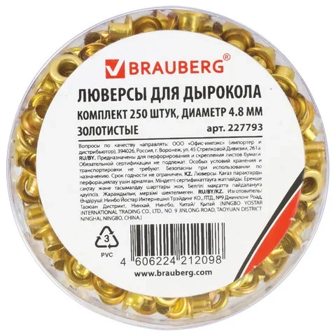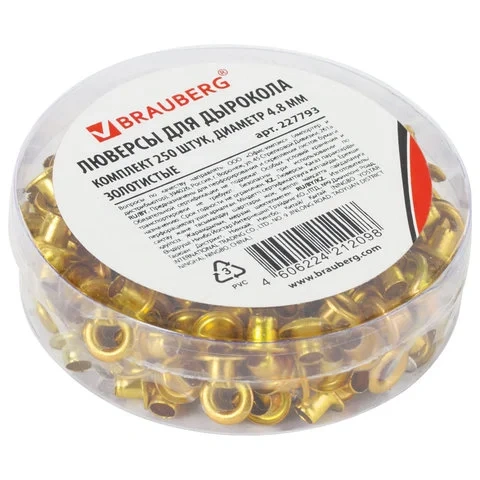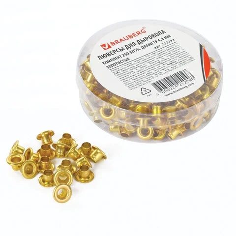 Люверсы металлические Brauberg 4.8мм, золотистые, 250шт/уп