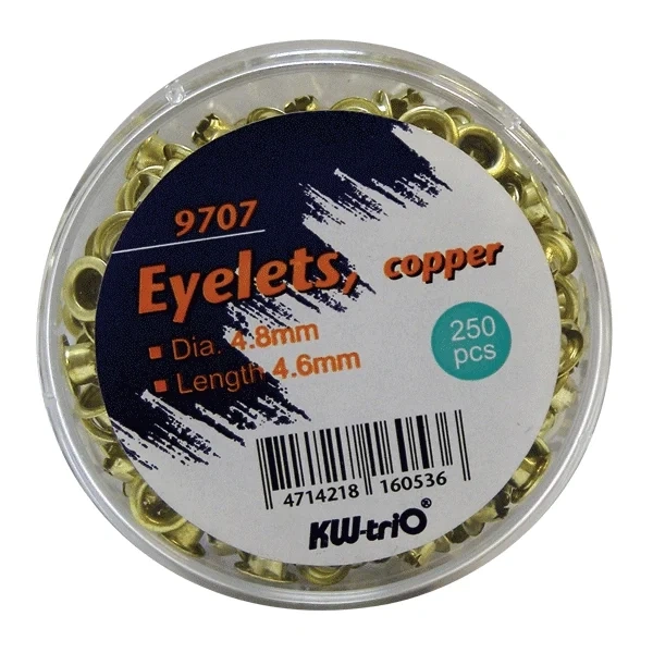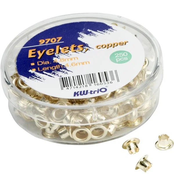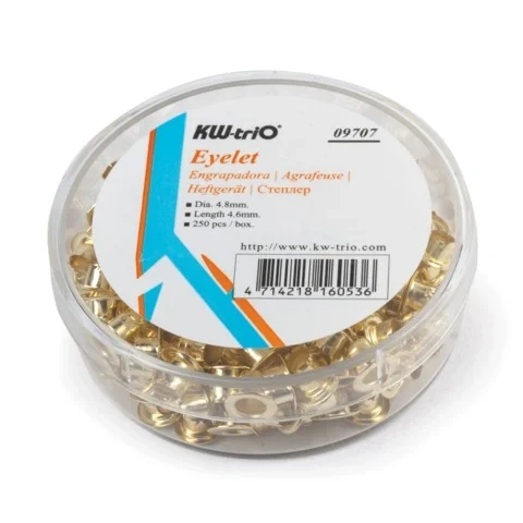 Отзывы о «Люверсы золотистые КОМПЛЕКТ 250 шт., внутренний диаметр 4,8 мм, длина 4,6 мм, BRAUBERG, 272764»