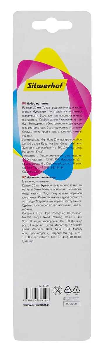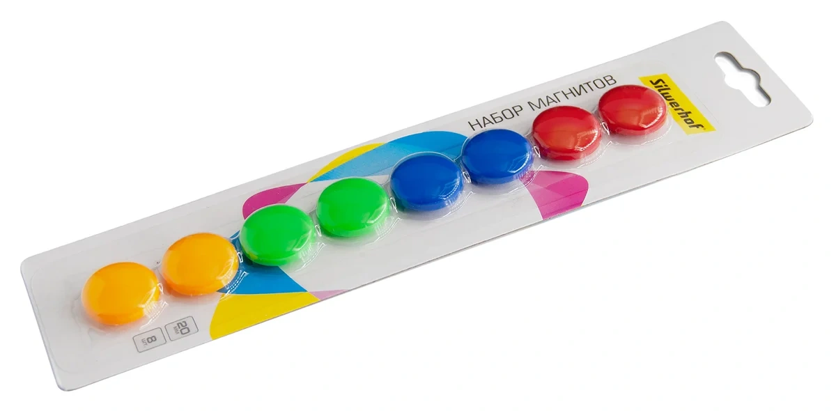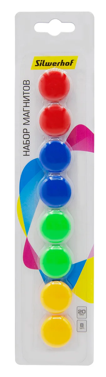 Магнит Silwerhof Classic для досок пластик ассорти d20мм круглый (упак.:8шт)