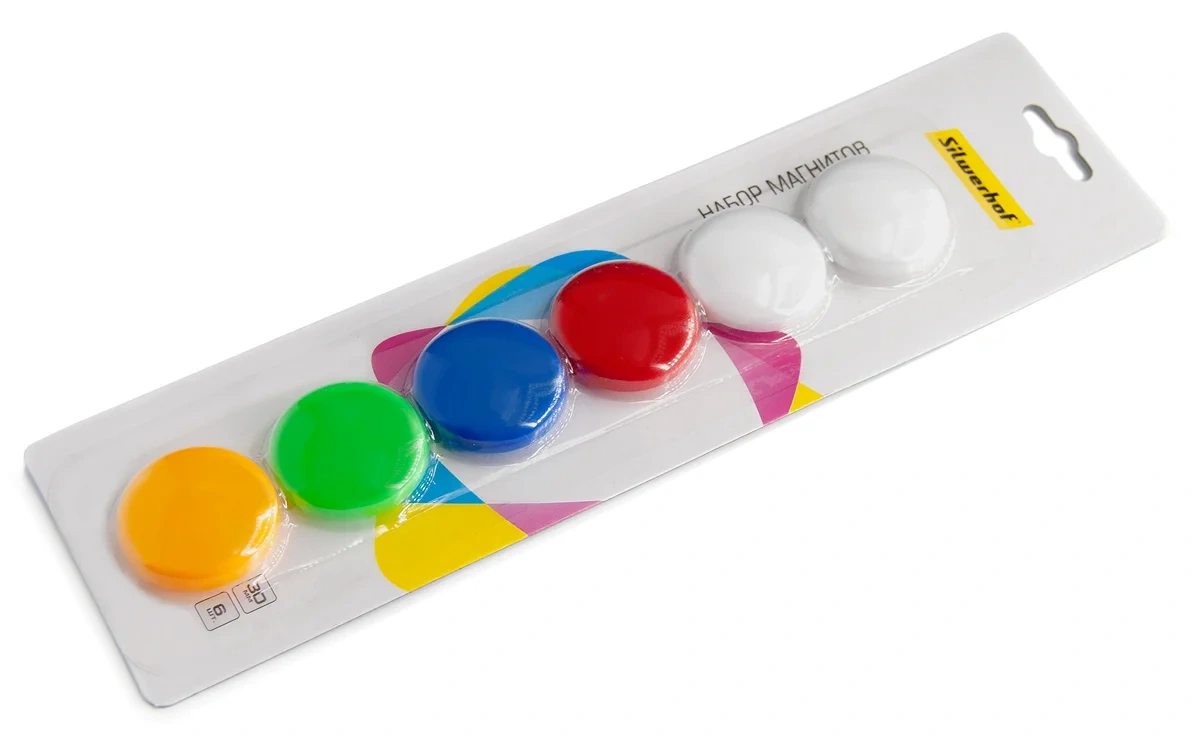 Магнит Silwerhof Classic для досок пластик ассорти d30мм круглый (упак.:6шт)