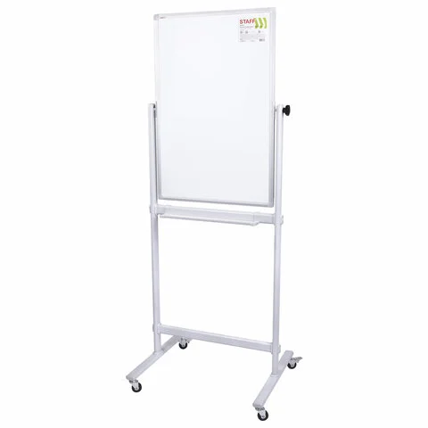 Доска магнитно-маркерная Staff мобильная 90х120см, белая, 2-сторонняя, 238014