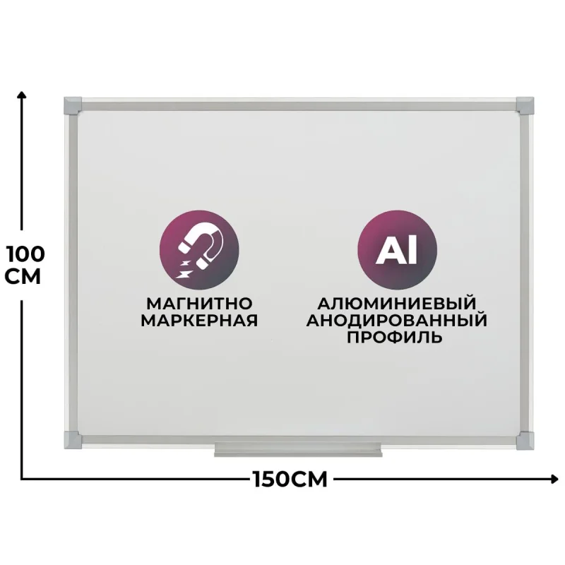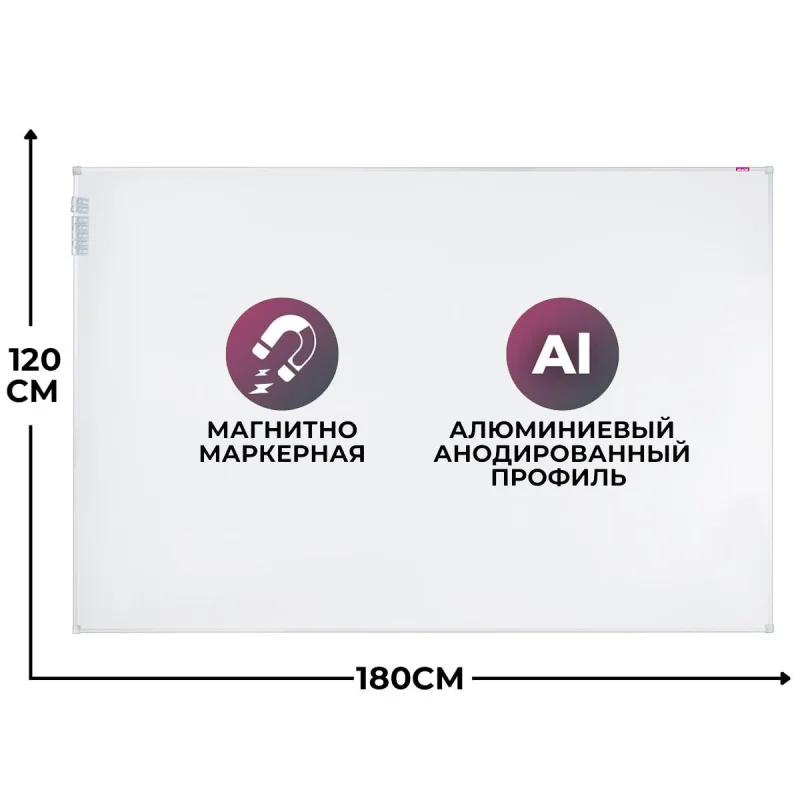 Доска магнитно-маркерная 100x180 см лаковое покрытие алюминиевая рама