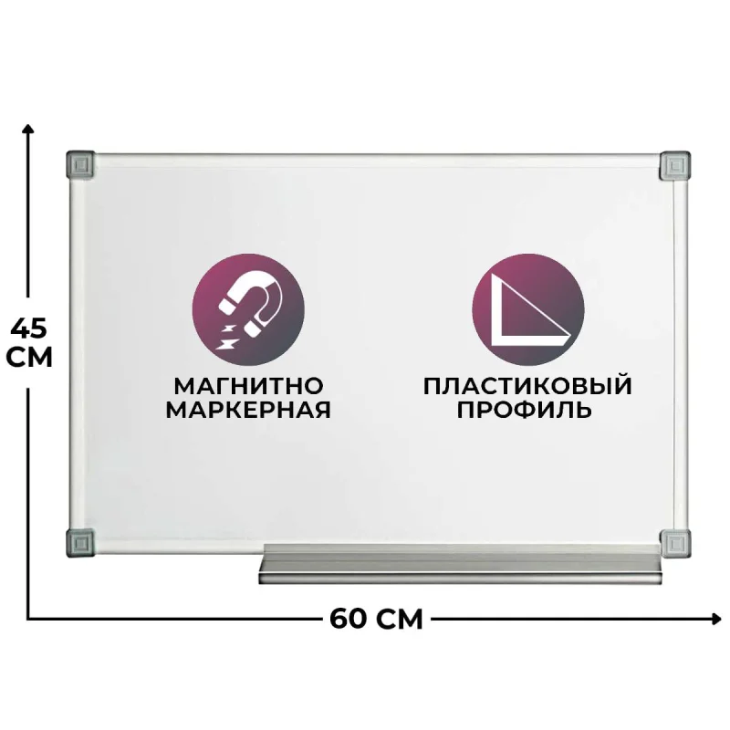 Доска магнитно-маркерная Staff 45х60см, белая, лаковая, пластиковая рама, полочка