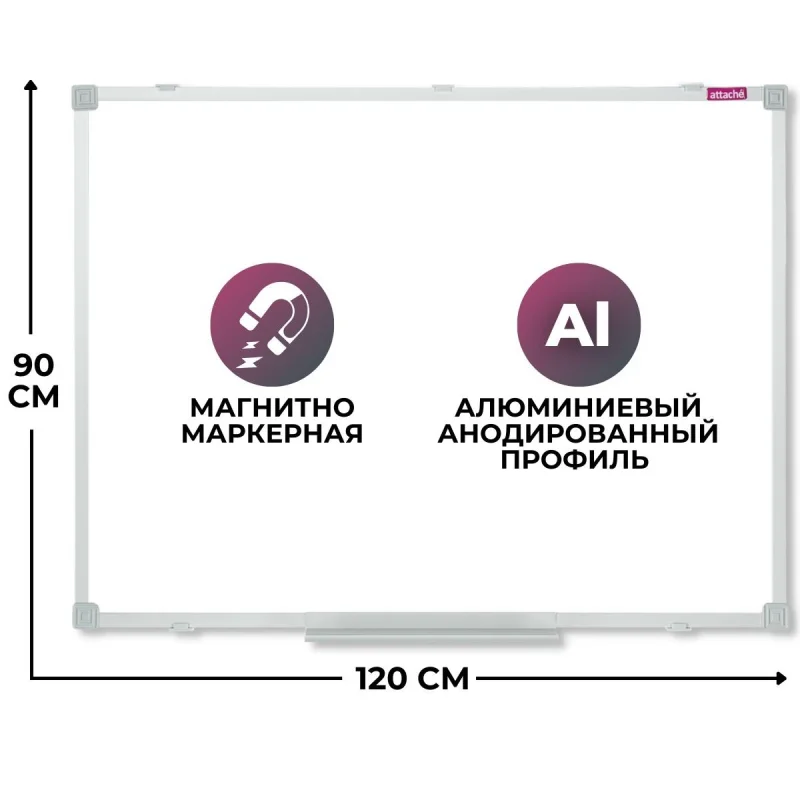 Доска магнитно-маркерная 90х120 Attache лак, рама аллюмин