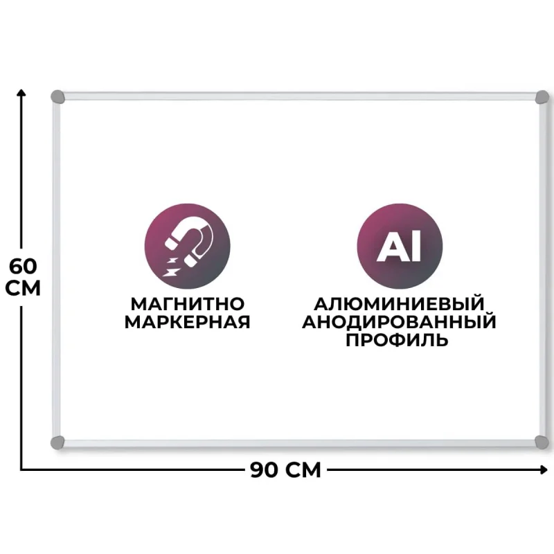Доска магнитно-маркерная Attache Эконом 60х90см, белая, лаковая, алюминиевая рама
