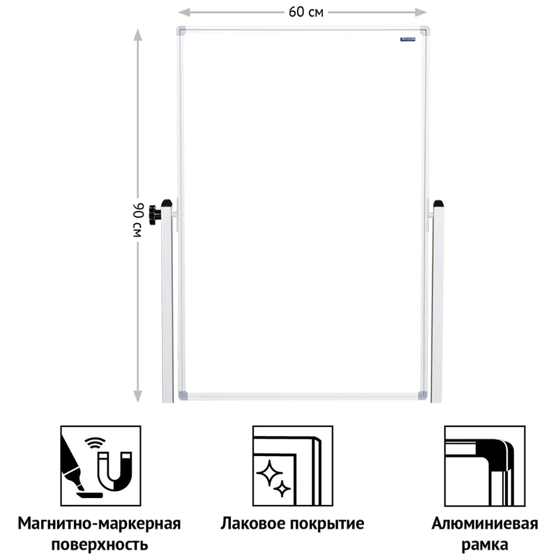 Доска магнитно-маркерная Brauberg мобильная 90х60см, белая, 2-сторонняя, 238139