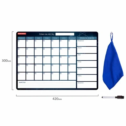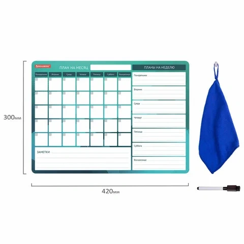 Планинг на холодильник магнитный На месяц 42х30 см, с маркером и салфеткой, BRAUBERG, 237849
