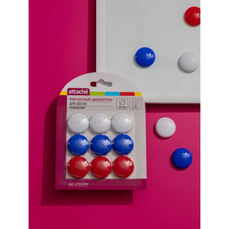 Магнитный держатель Attache для досок Триколор 30 мм,9 шт/уп ассорти