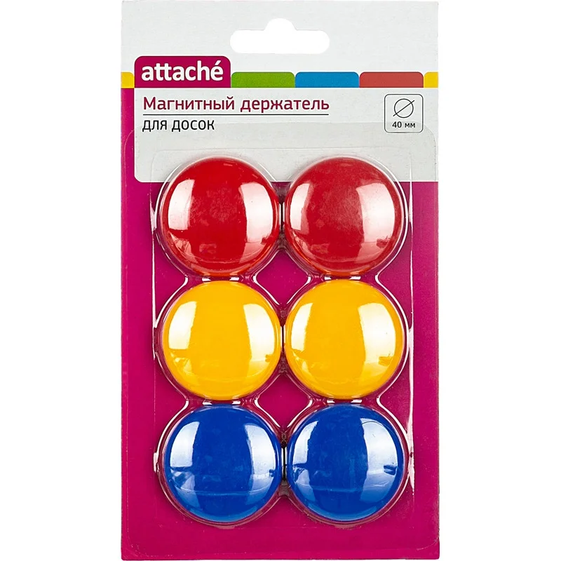 Магниты Attache 40 мм, 6 шт/уп, цвет ассорти