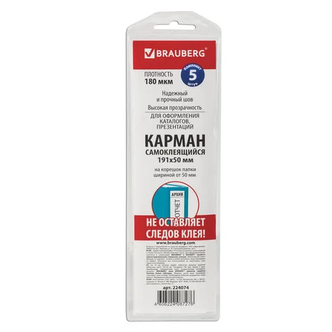 Самоклеящийся карман Brauberg 191x50мм, 5 шт/упак, 224074