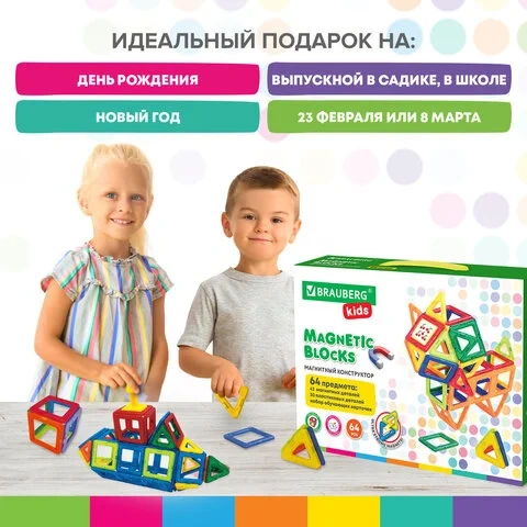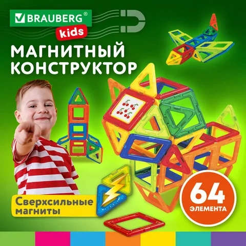 Набор совместим с другими наборами магнитного конструктора BRAUBERG KIDS.