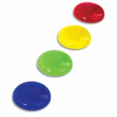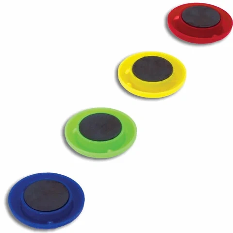 Диаметр магнита составляет 40 мм. 4 штуки в комплекте. Разноцветные магниты помогут надежно прикрепить листы бумаги к магнитно-маркерной поверхности досок, витрин и флипчартов. Надежно удерживаются на любой железной или стальной поверхности. Поставляются в удобной блистерной упаковке с европодвесом.