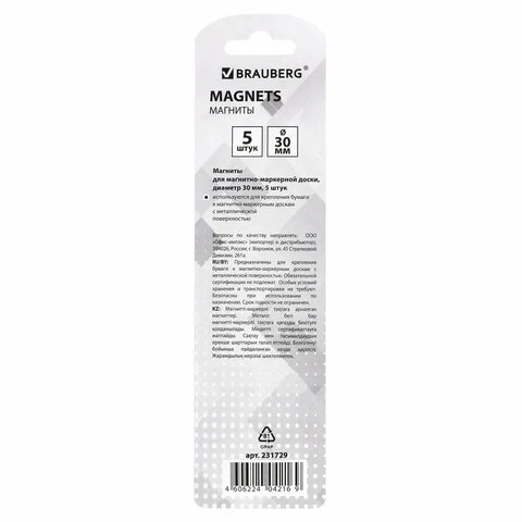 Приобрести магниты для магнитно-маркерных досок BRAUBERG можно в нашем интернет-магазине.