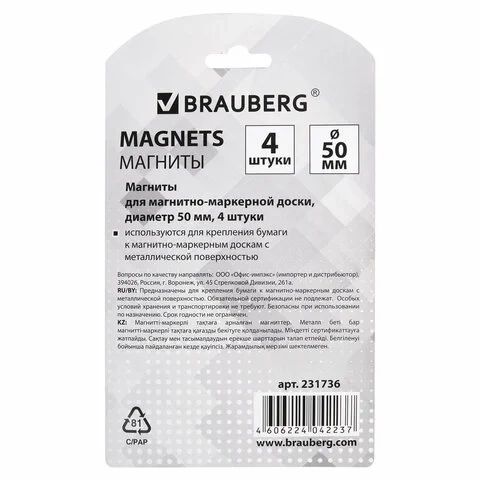 Приобрести магниты для магнитно-маркерных досок BRAUBERG можно в нашем интернет-магазине.