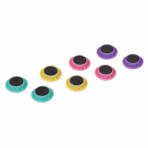 Диаметр магнита составляет 30 мм. В комплект входит 8 штук. Цвета - ассорти (красный, черный, желтый...