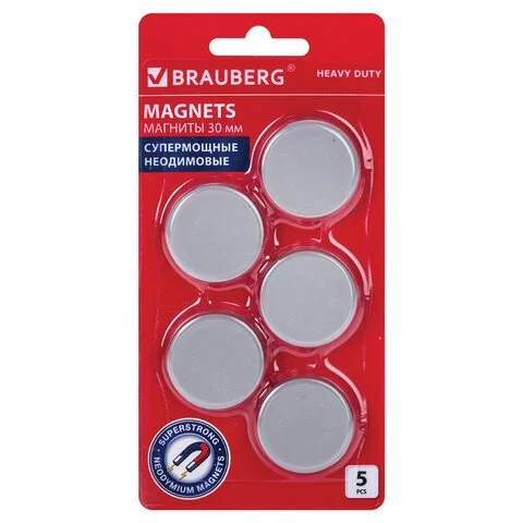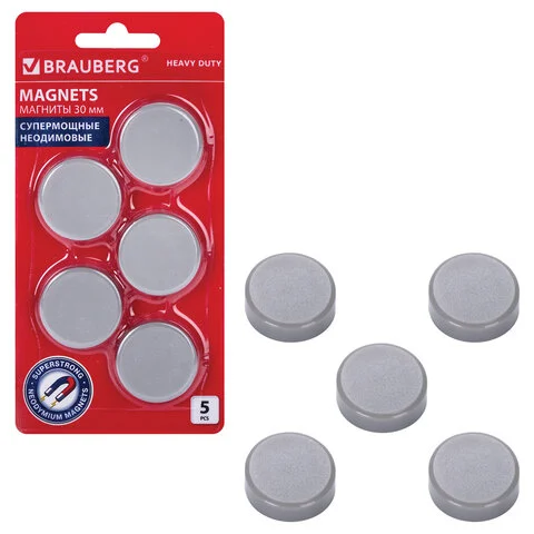 Магниты Brauberg 'HEAVY DUTY' неодимовые 30мм, 5шт, серые