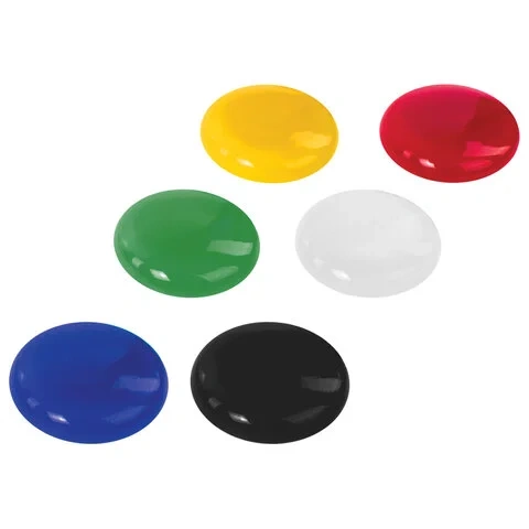 Диаметр магнита составляет 20 мм. 6 штук в комплекте. Надежно удерживаются на любой железной или стальной поверхности. Магниты круглой формы выполнены из пластика цветов ассорти. Поставляются в удобной блистерной упаковке с европодвесом.