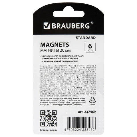 Приобрести магниты для магнитно-маркерных досок BRAUBERG 'STANDARD' можно в нашем интернет-магазине!
