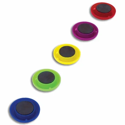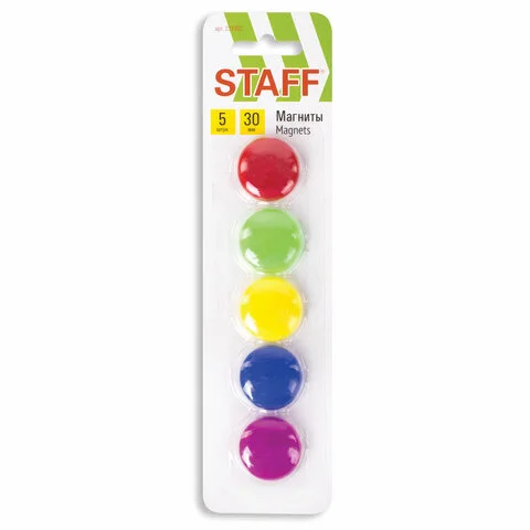 Диаметр магнита составляет 30 мм. В комплект входит 5 штук. Разноцветные магниты позволяют надежно п...