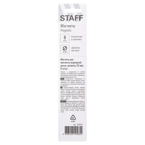 Магниты Staff d=20 мм, 8шт/уп, ассорти