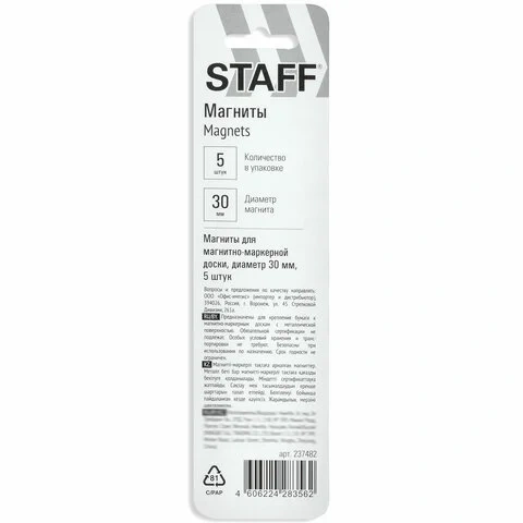 Диаметр магнита составляет 30 мм. В комплект входит 5 штук. Качественные магниты позволяют надежно п...